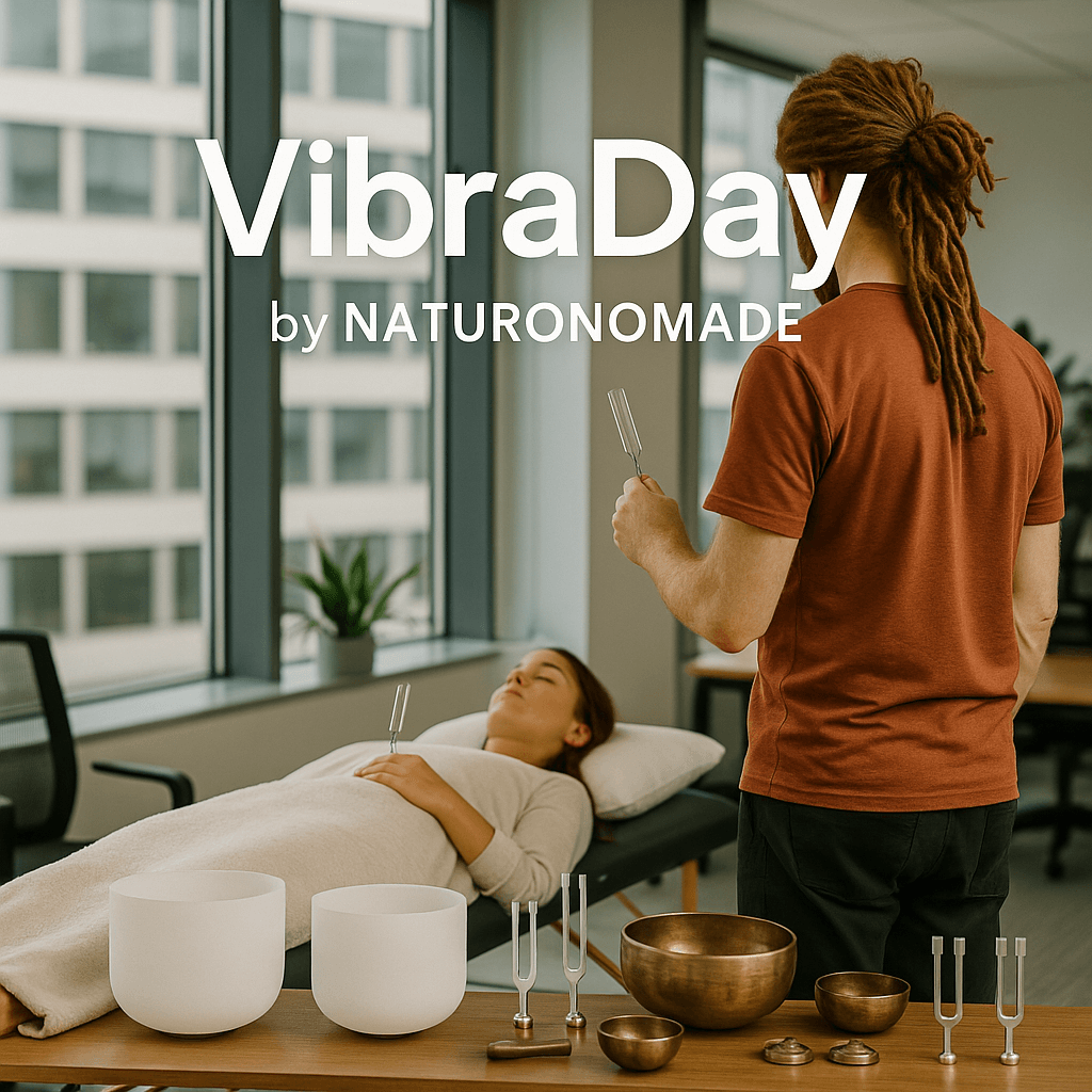 à travers l’utilisation de diapasons thérapeutiques, tambours et bols de type graal.